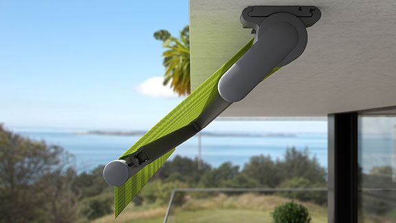 Der patentierte Schwenkmechanismus und die neigungsunabhängige Einfahrposition eignen sich perfekt für Dachvorsprünge oder Balkone.